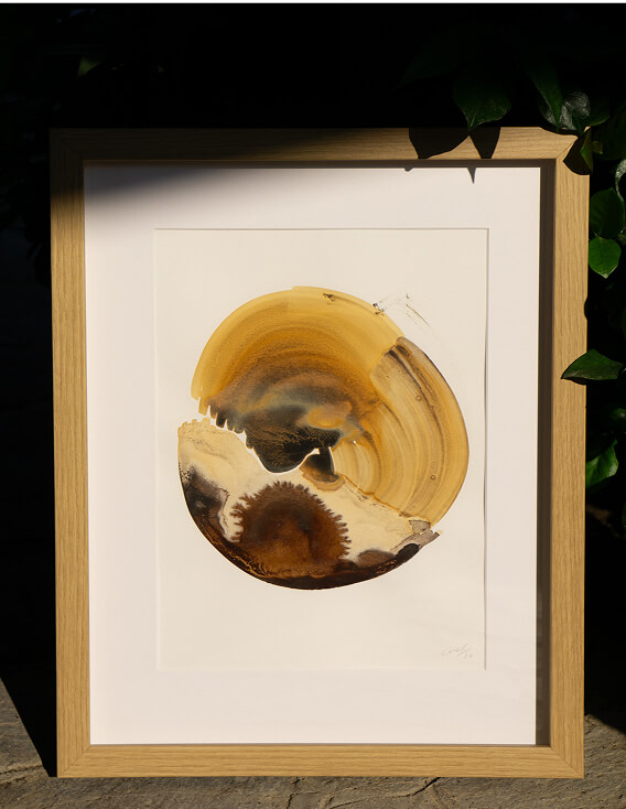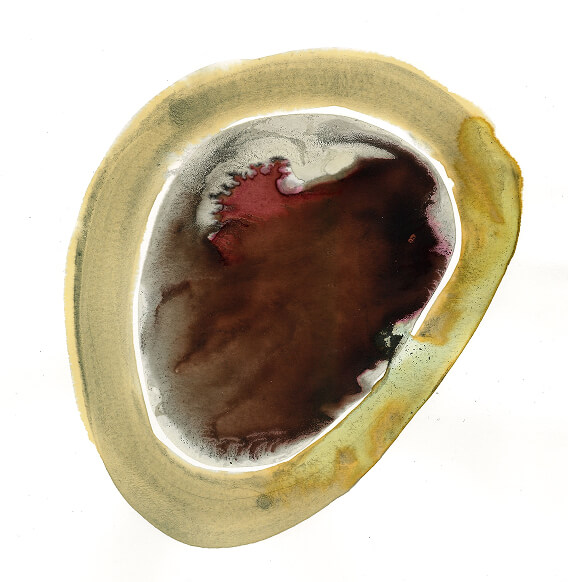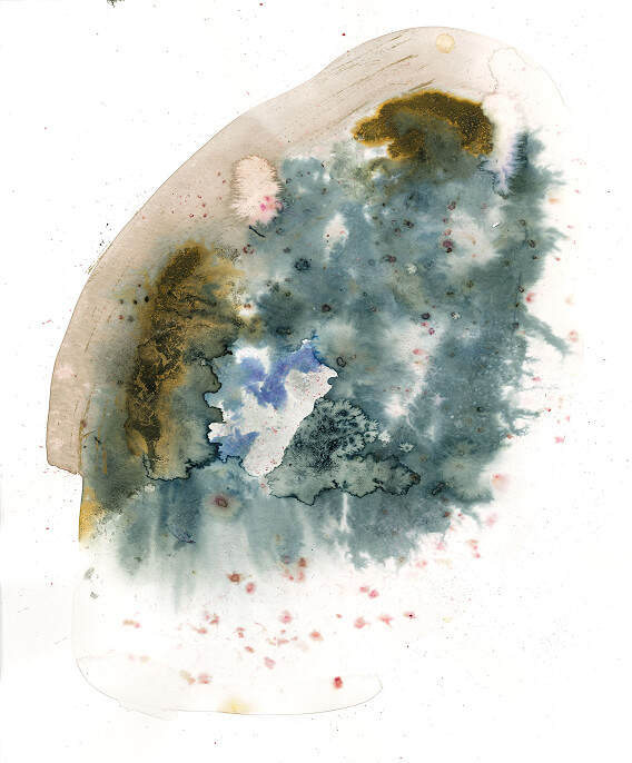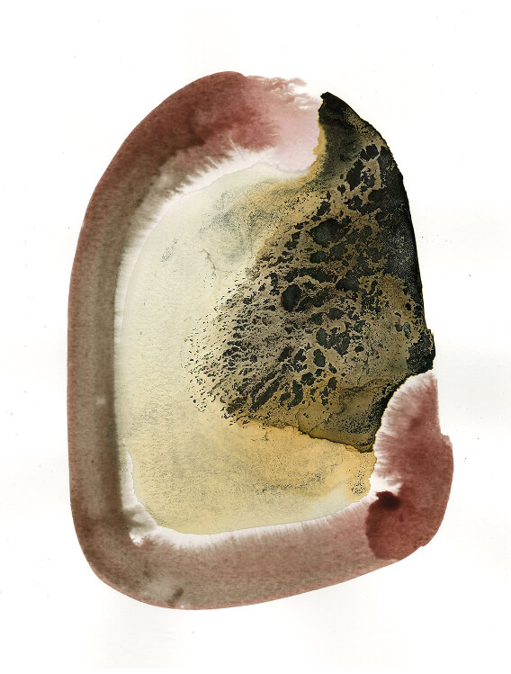 Partendo dalle nozioni apprese in merito alle tinture naturali dei tessuti e rimanendo ogni volta affascinata e stupita di fronte alla bellezza, intensità e resistenza dei colori di origine naturale, utilizzai come supporto la carta e incominciai a produrre dei veri e propri inchiostri, più concentrati e densi, sensibili al tempo e all’ambiente, ponendomi ogni volta come uno spettatore che si lascia stupire dall’imprevedibile mutevolezza della materia e che da essa trae insegnamento. Attraverso questa serie di lavori ho voluto mostrare le bilanciate precarietà insite in ognuno di noi, di istinto e controllo, accidentale e casuale non preoccupandomi dell’immagine che stavo creando ma aspettando che il colore tracciasse il suo percorso in maniera del tutto spontanea. Ogni lavoro è stato realizzato con colori di origine botanica ottenuti da foglie, radici, fiori, bacche e bucce ma anche da additivi capaci di alterare il colore di partenza agendo sul ph o interagendo con sostanze come i tannini di cui le piante sono ricche; fra questi troviamo ad esempio l’acetato ferroso, ottenuto da ferro arrugginito o ancora il bicarbonato di sodio e il limone.